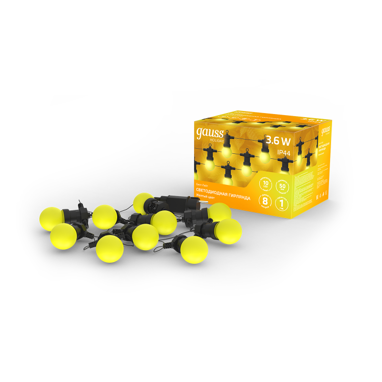 Гирлянда светодиодная Белт Лайт Gauss серия Holiday, 10 ламп, 7,7 м, IP44 с желтыми колбами подарит вашему дому неповторимый колорит и стиль. 10 LED-ламп насыщенного желтого цвета создадут по-настоящему теплую, праздничную атмосферу.
