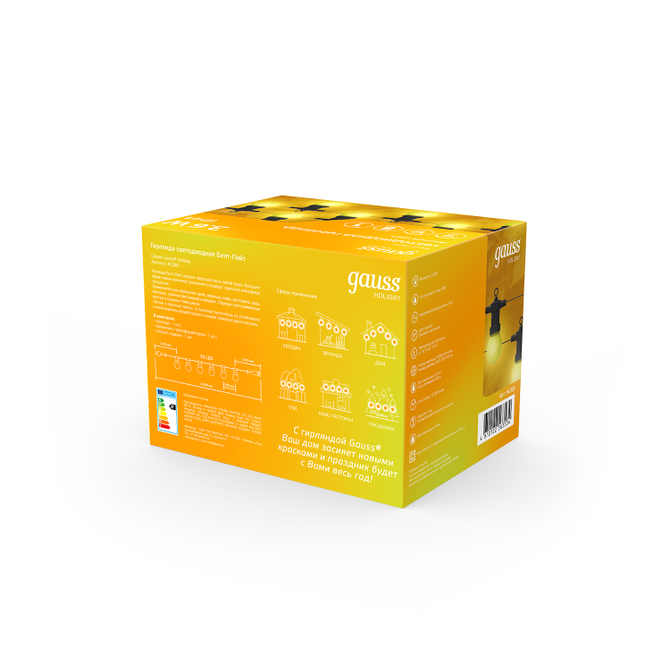 Высококачественные материалы и надежная проводка обеспечивают длительный срок службы гирлянды Gauss, которая прослужит вам многие годы, озаряя каждый праздник ярким светом.