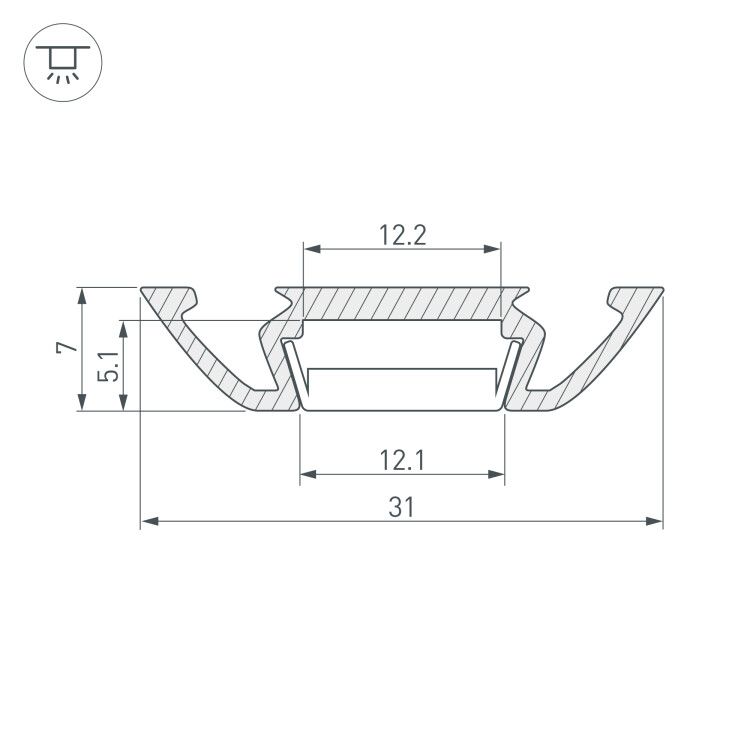 Алюминиевый анодированный профиль для светодиодных лент и линеек. Габаритные размеры (L×W×H): 2000x31x7 мм. Ширина площадки для ленты 12,2 мм. Экраны, заглушки и другие аксессуары приобретаются отдельно. Цена за 1 метр. Кратность заказа поставщику: 2 м.
