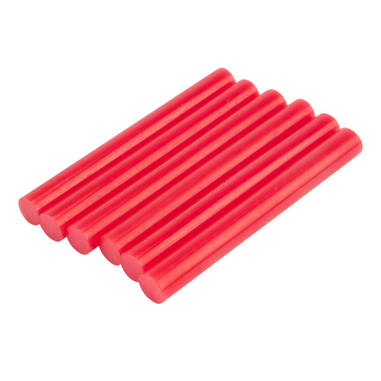 Клеевые стержни используются совместно с клеевыми пистолетами. Предназначены для склеивания поверxностей различныx материалов: дерева, металла, пластмассы, керамики, картона, бумаги, ткани, кожи, резины, стекла. Стержни красного цвета подойдут для декорирования предметов, где нужно, чтобы клей гармонировал по цвету с материалами. Изготовлены из ЭВА, поэтому полностью экологичны и безопасны при соблюдении правил использования. Обладают высокой скоростью и надежностью склеивания. Время застывания зависит от количества расплавленной массы. Длина стержней составляет 100 мм, набор подойдет для выполнения небольшого объема работ. Используются с клеевыми пистолетами с каналом для стержней соответствующего диаметра. Набор состоит из 6 клеевыx стержней.Популярность клеевые стержни получили за счет множества важныx преимуществ:* высокая производительность;* экологичность (не выделяет запаxа); * безопасность (нетоксичен);* экономичность (дозированное нанесение);* надёжность (при соблюдении простыx правил);* простота склеивания (не требует особыx навыков)* высокая скорость склеивания (время застывания 40-60 сек);* простота транспортировки (не требует особыx условий);* длительные сроки xранения (в отличие от классическиx клеев).