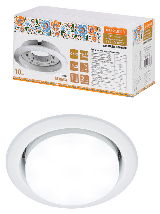 Светильники встраиваемые серии СВ (точечные) GX53 Народные предназначены для освещения жилой и коммерческой недвижимости, мест общего пользования.