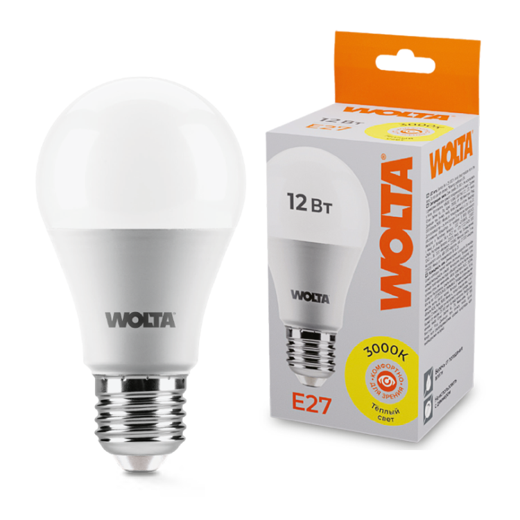 WOLTA Лампа LED A60 12Вт 1050лм Е27 3000К 1/50