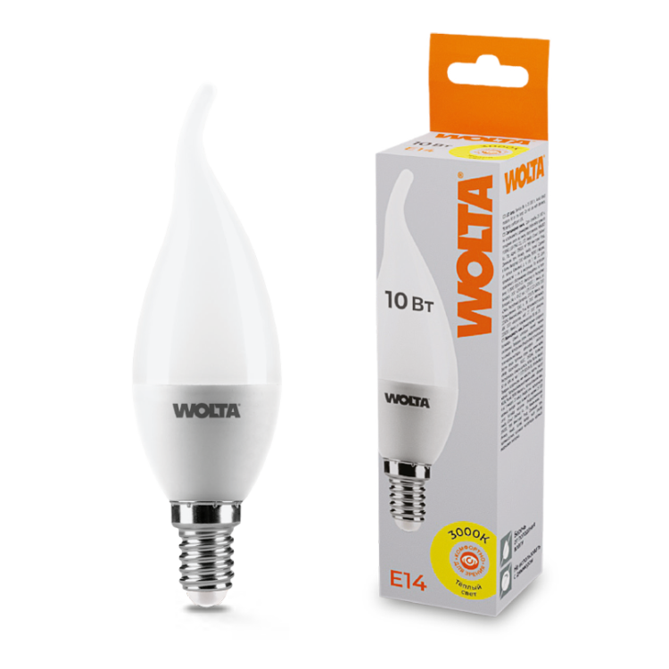 Светодиодная лампа WOLTA 25YCD10E14 "Свеча на ветру" CD37 10Вт 825лм 3000К Е14 1/50 (кр.50шт)