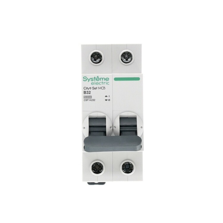 Автоматический выключатель серии City9 Set Systeme Electric, 2-полюсный, номинальный ток 32 А, характеристика B, Icn = 4.5 кА. Применяется в электрических сетях напряжением 230 В. Предназначен для защиты от перегрузок и токов короткого замыкания. Оснащен механизмом «мгновенной коммутации». Ударопрочный корпус из специального пластика с 6 металлическими заклепками. Безопасные клеммы исключают попадание кабелей в заклеммное пространство (ранее Schneider Electric Easy9 EZ9F14232).