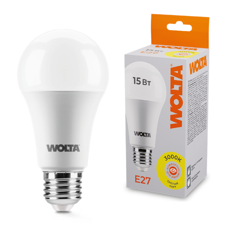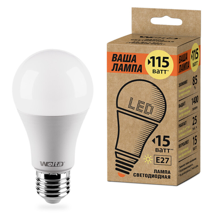 Светодиодная лампа WOLTA 25Y60BL15E27 "Груша" A60 15Вт 1300лм 3000К Е27 1/50 (кр.50шт)