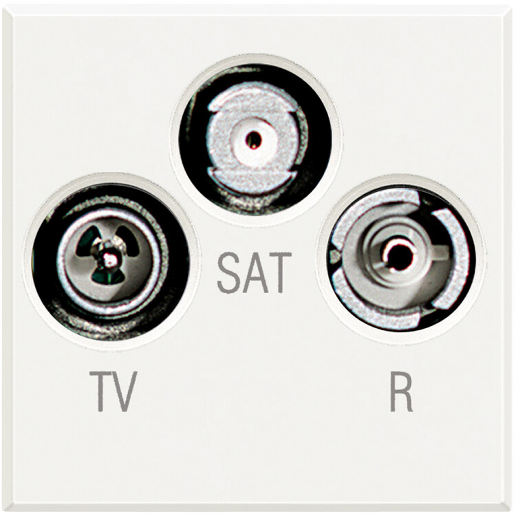 Axolute Экранированная коаксиальная розетка, штыревой TV разъем ? 9,5 мм, гнездовые разъемы SAT и RD ? 9,5 мм, для установки в монтажные коробки арт. 503Е, 504Е, 506L, цвет белый(кр.1шт)
