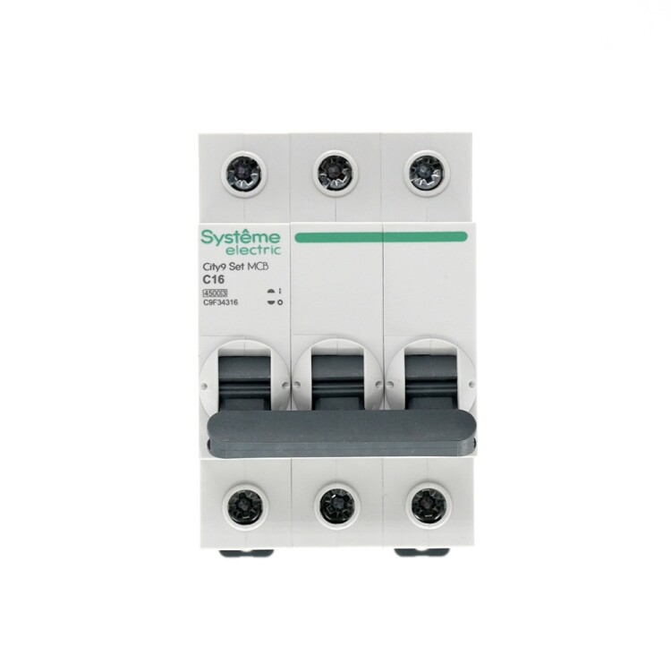 Автоматический выключатель серии City9 Set Systeme Electric, 3-полюсный, номинальный ток 16 А, характеристика С, Icn = 4.5 кА. Примен яется в электрических сетях напряжением 400 В. Предназначен для защиты от перегрузок и токов короткого замыкания. Оснащен механизмом «мгновенной коммутации». Ударопрочный корпус из специального пластика с 6 металлическими заклепками. Безопасные клеммы исключают попадание кабелей в заклеммное пространство (ранее Schneider Electric Easy9 EZ9F34316).