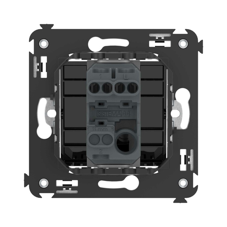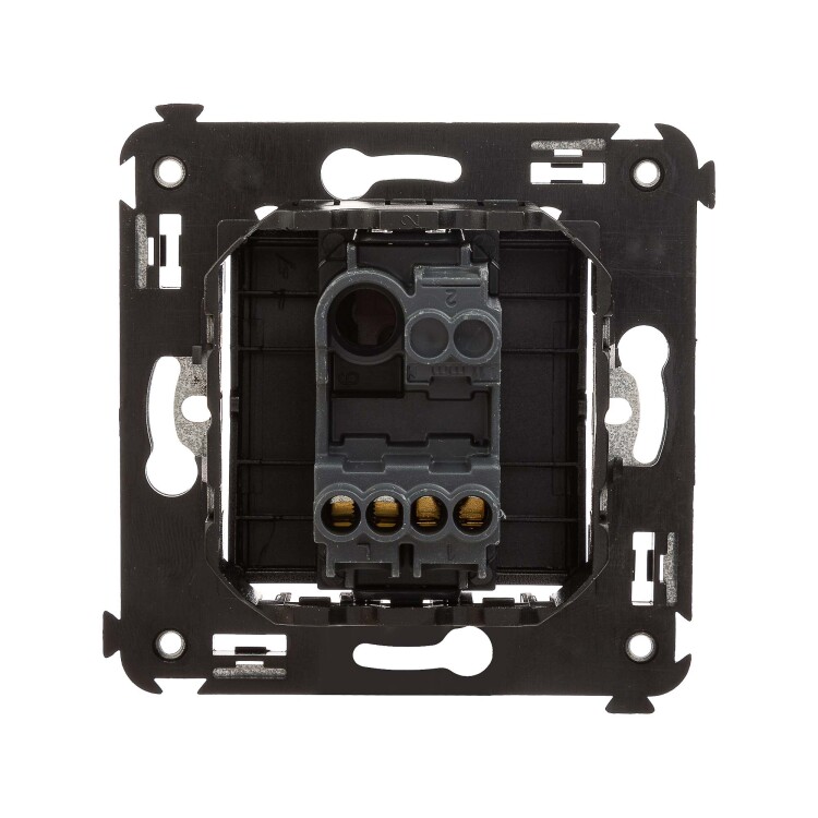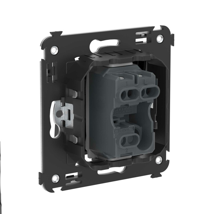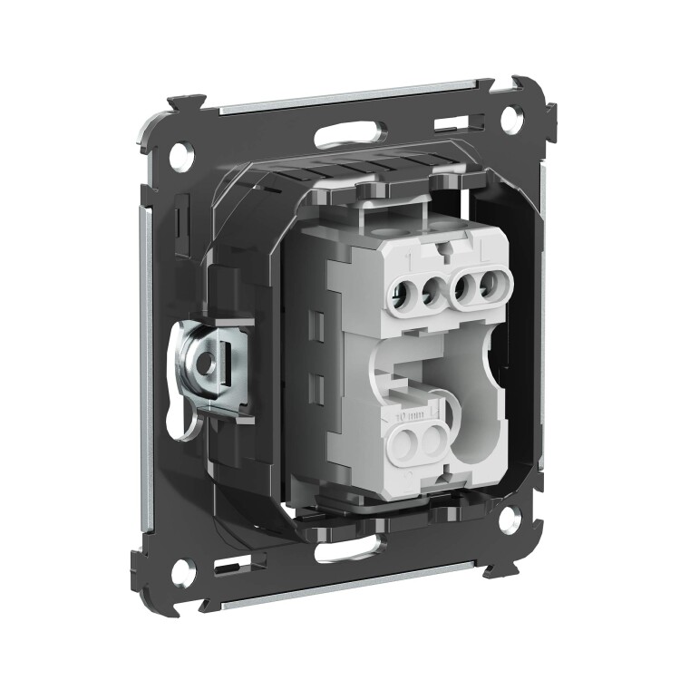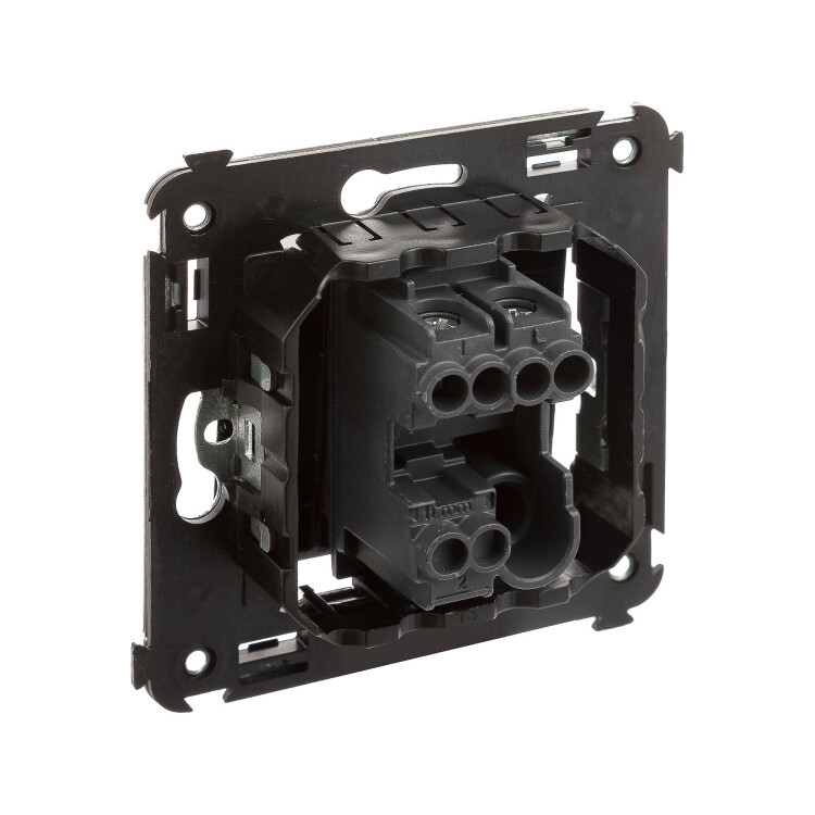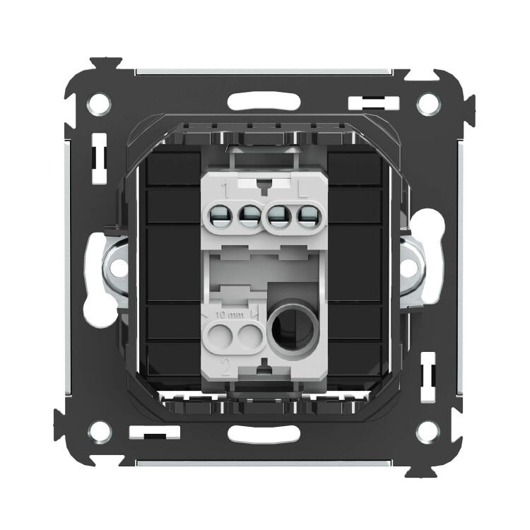 шаблон для зачистки кабеля – 11 мм; номинальный ток – 10 A; номинальное напряжение – 230 В; фиксация в подрозеточные коробки при помощи каркаса с лапками (код 4400802) и