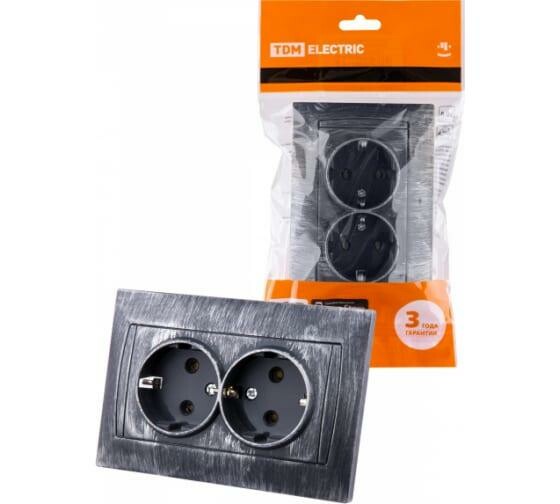 Розетка двойная 2П+З 16А 250В с защ. шт. старинное серебро "Лама" TDM (кр.6шт)