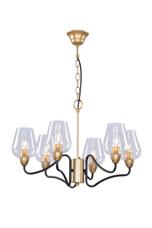 Коллекция лаконичных светильников имеет название "fresco", что означает "свежий". В этих светильниках свежа каждая деталь - и кристально прозрачные плафоны, и сочетание благородного золота с черным каркасом. Перед Вами простота, оставляющая неизгладимое впечатление. Коллекция представлена подвесной 6-ти рожковой люстрой.