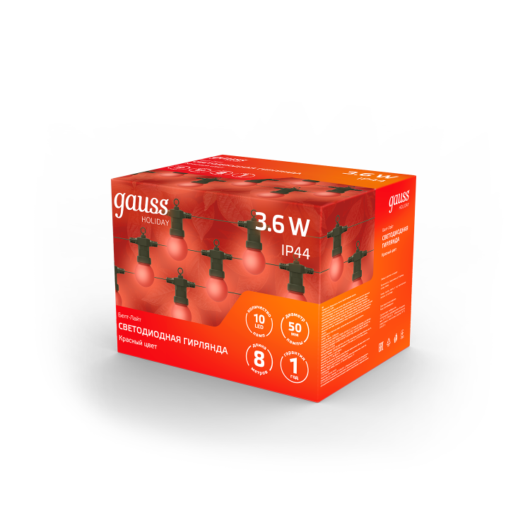 Гирлянда светодиодная Белт Лайт Gauss Holiday включает в себя 10 красных ламп, которые создадут потрясающее праздничное освещение.