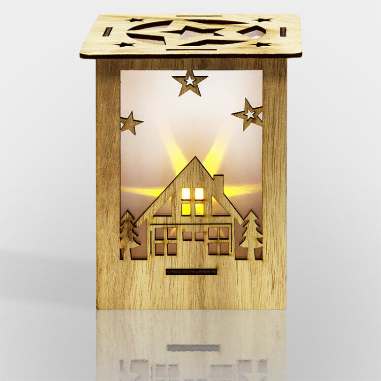 Деревянная фигурка с подсветкой "Волшебный фонарик" 13,8x11x11 см создана, чтобы гармонично украсить ваш инте рьер, наполнить дом уютом, теплом и создать ощущение комфорта. Светодиодный декор выполнен в виде фонаря в прямоугольном корпусе из натуральной древесины. Экологичный материал не вызывает аллергии. 1 яркий диод мягко подсвечивает резные фигурки домиков. Изделие питается от 1 батарейки CR2032, которая вxодит в комплект. Деревянная фигурка с подсветкой - прекрасный подарок для родныx и друзей.