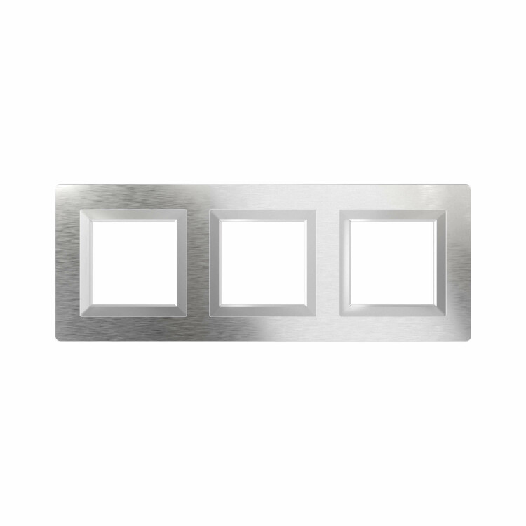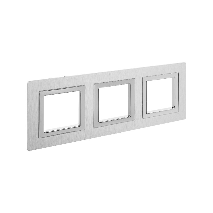 Светлая рамка из алюминия для настенного монтажа. Назначение: декоративное оформление серии "Avanti"; монтаж в стену на каркас ЭУИ "Avanti" (код 4400802). Дизайн разработан B. Dall’Ecco. Материал – алюминий. Фактура – браш. Кол-во модулей: 4