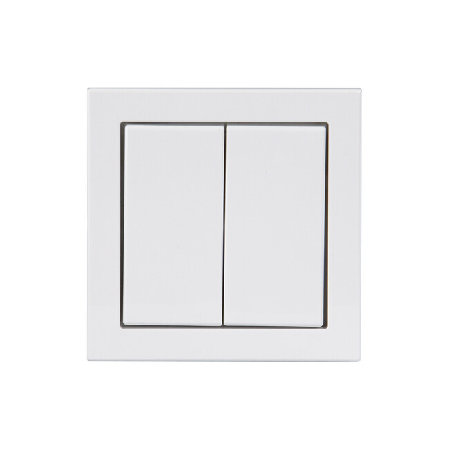 Двухклавишный выключатель для скрытого монтажа, IP44. Двухклавишный переключатель в сборе. В комплект входит механизм переключателя, клавиша, рамка, фиксирующая рамка и уплотнение. Безвинтовые клеммы рассчитаны максимум на 2 одножильных провода.