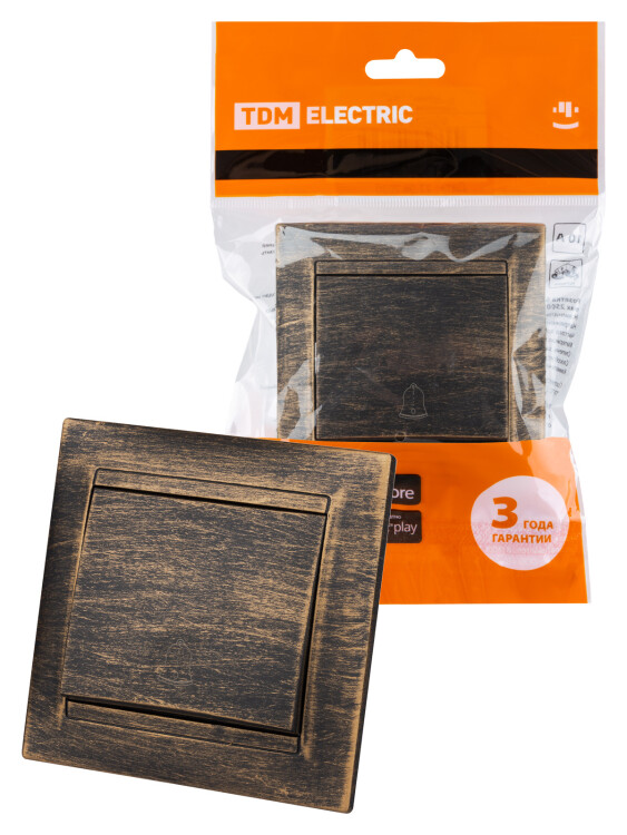 Кнопка звонковая 6А старинная бронза "Лама" TDM (кр.10шт)