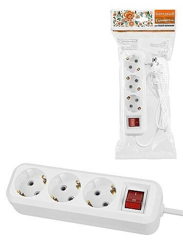 Назначение: Предназначены для использования в быту, офисе, в загородном доме. Применение: Удлинители применяются для подключения всевозможных электроприборов и устройств самого различного назначения (бытовая и офисная техника, осветительные приборы, инструмент и т.д.); Преимущества: Провод повышенной гибкости в двойной ПВХ изоляции; Корпусные детали, соприкасающиеся с токоведущими элементами, выполнены из трудногорючих материалов; транспортная упаковка по 20 шт оптимальна для формирования ассортимента и логистики; Эргономичная вилка; Ударопрочный корпус, устойчивый к старению; Материалы: Корпусные детали, соприкасающиеся с токоведущими элементами, выполнены из трудногорючих материалов Корпус удлинителя выполнен из ударопрочного, устойчивого к выгоранию и старению пластика; Питающий провод повышенной гибкости в двойной изоляции армирован неразборной литой вилкой