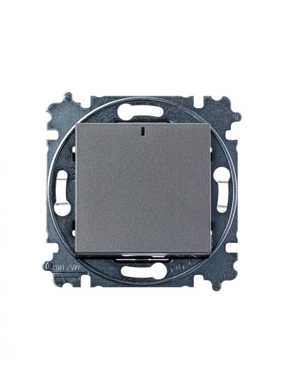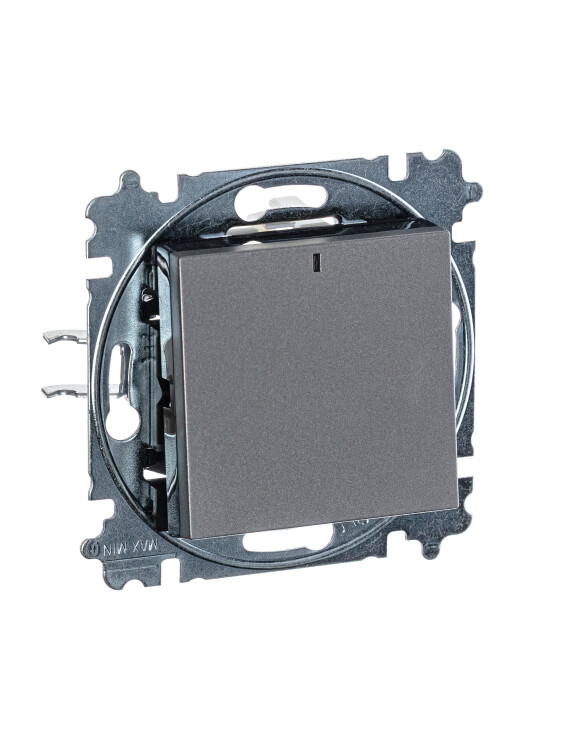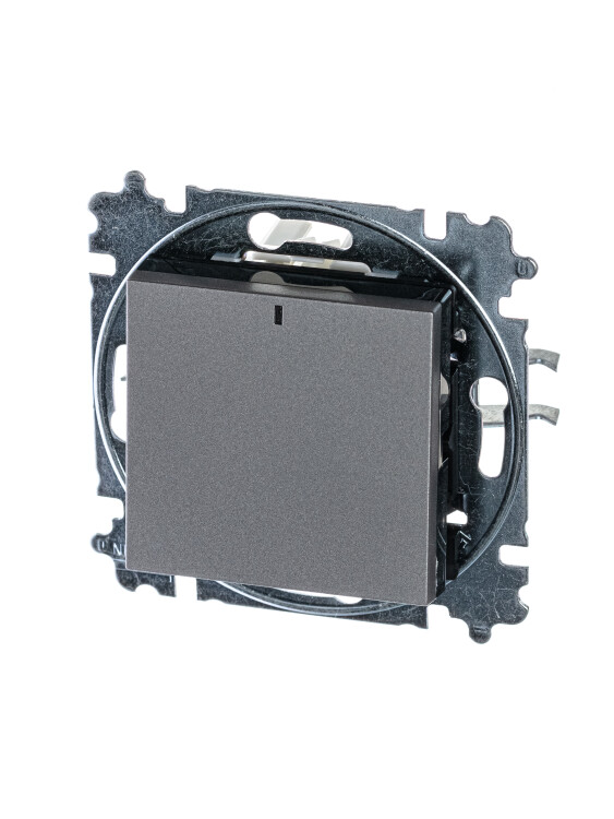 Выключатель 1-клавишный с подсветкой, Levit, сталь/дымчатый чёрный (кр.15шт)