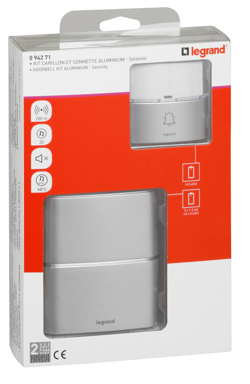 Звонок беспроводной - комплект "Премиум" - 30 рингтонов - дальность 200 м - цвет алюминий
