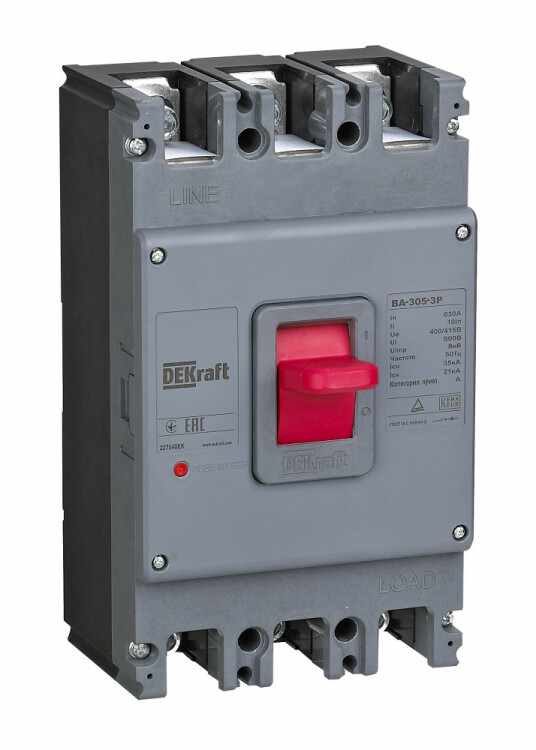 Автоматические выключатели в литом корпусе серии ВА-300 типа ВА-305М с нерегулируемым термомагнитным расцепителем для защиты двигательной нагрузки; 3P; ном. ток 630А. Аппараты используются на энергетических, жилых, промышленных, транспортных и других объектах.