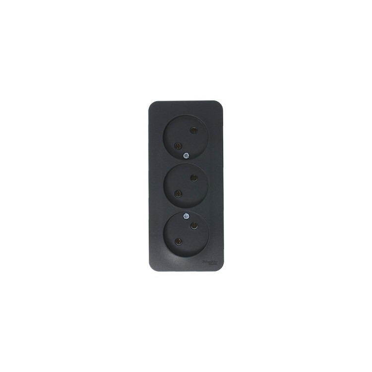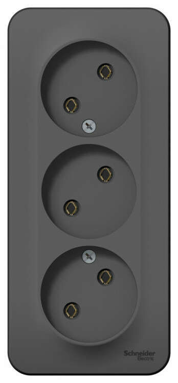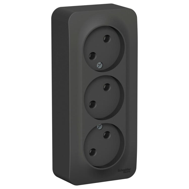 Розетка Systeme Electric (ранее Schneider Electric) BLANCA (антрацит, открытой установки) трехместная, без шторок и заземления, с изолирующей пластиной предназначена для сетей до 250В, на ток до 16А. Трехместная розетка позволяет подключить три устройства в одном месте. Она изготовлена из ABS-пластика, проста в установке и удобна в применении.