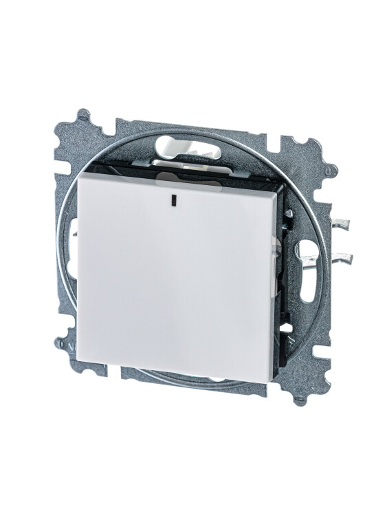 Механизм переключателя в комплекте c накладкой и блоком подсветки для установки в декоративную рамку. Подсветка LED ориентационная белого цвета