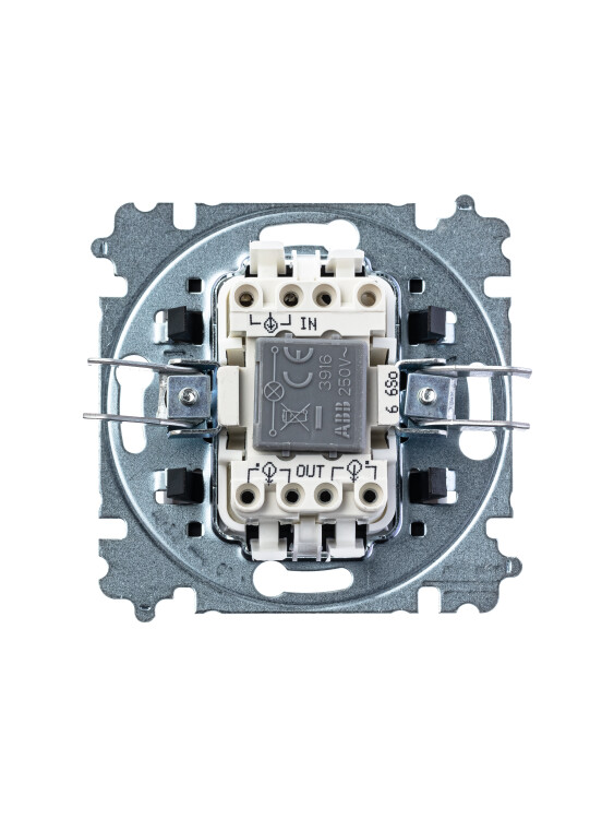 Механизм переключателя в комплекте c накладкой и блоком подсветки для установки в декоративную рамку. Подсветка LED ориентационная белого цвета