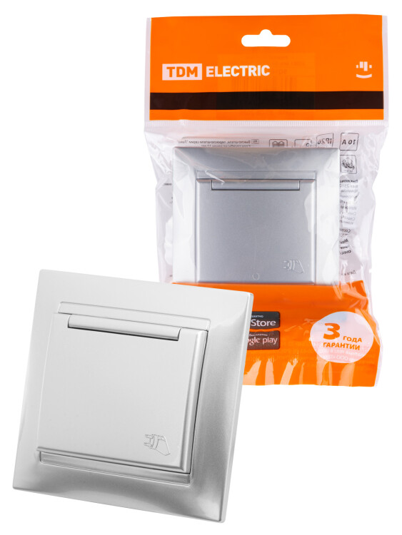 Розетка 2П+З 16А 250В IP44 с крышкой серебр. металлик "Лама" TDM (кр.10шт)