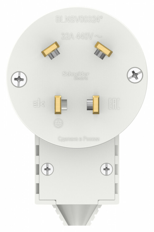 Вилка Systeme Electric (ранее Schneider Electric) BLANCA (белый, скрытой установки) силовая предназначена для применения в сетях до 440В, на ток до 32А. Монтаж выполняется с помощью монтажных лапок и винта. Поверхность имеет глянцевое покрытие. Размеры розетки: 67*104*73 мм.