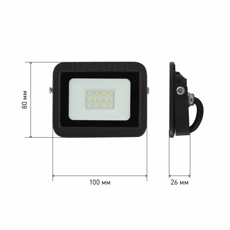 Прожектор светодиодный уличный (СДО) ЭРА LPR-061-0-65K-010 мощность 10 Вт, с цветовой температурой 6500К (холодный белый свет), пылевлагозащитой IP65 (защищен от пыли и струй воды с любого направления), световым потоком 950 Лм. Корпус изготовлен из анодированного алюминия с покраской в черный цвет. Стекло - закаленное. LED технология обеспечивает длительный срок службы и экономию электроэнергии. Светильник работает в широком диапазоне рабочих напряжений 180-265В, а также широком диапазоне температу от -40 до +45 - подходит как для внутреннего, так и наружного применения. Предназначен как для промышленного, так и для бытового освещения: дворов, подсобных помещений, приусадебных хозяйств, билбородов, в качестве уличного фонаря.