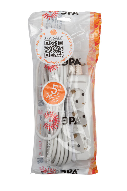 Удлинитель электрический ЭРА EM-3z-5m-10A с заземлением 3 розетки 5м ПВС 3x0,75мм2 10А (кр.1шт)