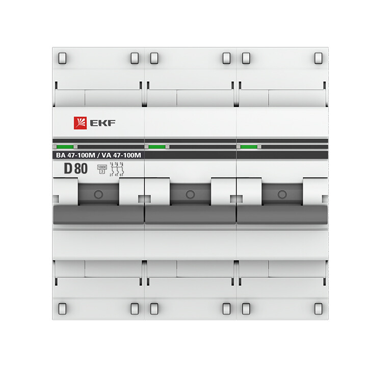 Автоматический выключатель 3P 80А (D) 10kA ВА 47-100M без теплового расцепителя EKF PROxima (кр. 1шт)