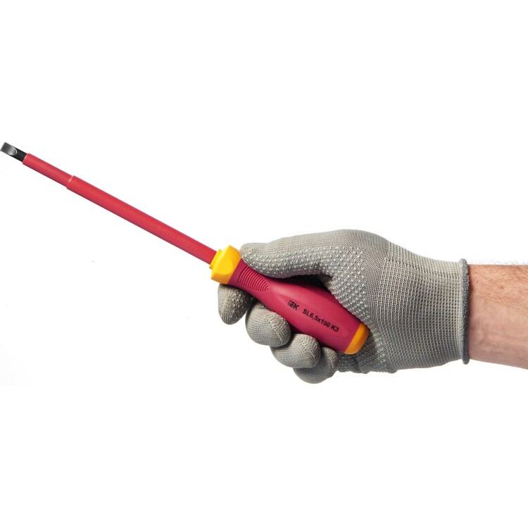 Диэлектрическая крестообразная отвертка К3 (Expert) предназначена для электромонтажных работ под напряжением до 1000В, изготовлена из хром-ванадиевой стали. Рукоятка из 2-х-слойной термопластичной резины PP+TPR.