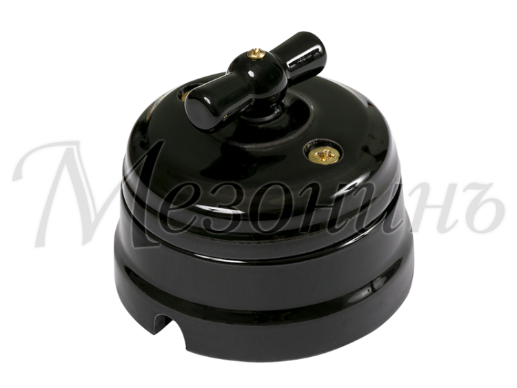Двухклавишный фарфоровый ретро поворотный выключатель на 4 положения для скрытой и открытой проводки, для управления с 2 группами освещения. Размер: D70х60мм ; Характеристики: 10А, 250В, IP 20