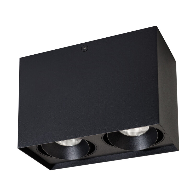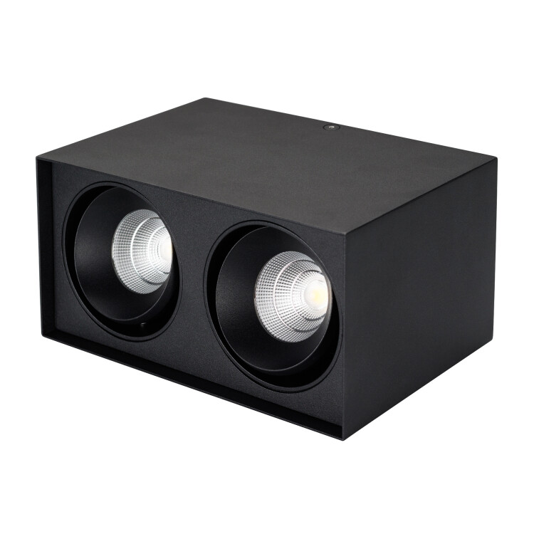 Накладной светильник 2x11Вт, черный квадратный корпус. Цвет ДНЕВНОЙ БЕЛЫЙ 4000K, св.поток 1700лм, CRI(Ra)>80, угол 40°, регулируемое направление луча 30°. Размер 100x200x135 мм. Питание AC 220-240V, 22Вт, драйвер встроенный 2 шт (DC500mA 14-24V).