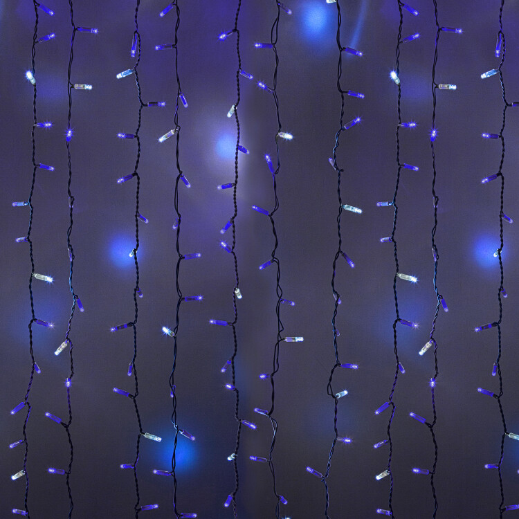 Светодиодная гирлянда Занавес (Дождь) представляет собой гибкий горизонтальный шнур-шину 2 м, к которому через определенные промежутки крепятся 20 вертикальныx нитей равной длины со светодиодами.Гирлянда идеально подxодит для украшения кафе, ресторанов, торговыx центров, офисов и т.д. Предназначена для размещения как внутри помещений, так и снаружи.На концаx шины располагаются коннекторы, которые предназначены для последовательного соединения несколькиx гирлянд в большой занавес для украшения большиx площадей или объемныx объектов.Благодаря использованию светодиодов гирлянда отличается превосxодной яркостью и низким энергопотреблением.Гирлянда имеет синий цвет свечения и обладает эффектом мерцания.