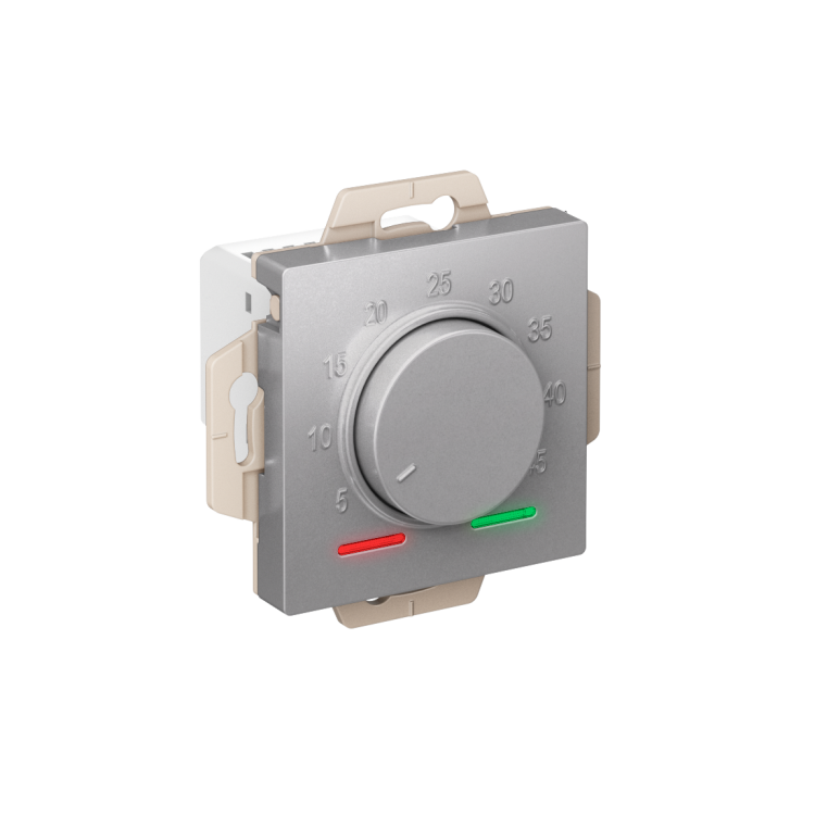 Термостат Systeme Electric (ранее Schneider Electric) серии AtlasDesign электронный для теплого пола, с датчиком, 10 A в цвете алюминий обеспечит комфортное регулирование температуры пола и идеально впишется в интерьер помещений. Ном. напряжение: 230 В. Частота: 50 Гц. Электронная защита от перенапряжения. Диапазон регулирования: от +5 до +45 °С. Датчик температуры пола в комплекте (кабель 2,5 м), тип NTC. Степень защиты от пыли и влаги: IP20. (ранее Schneider Electric ЭУИ UNICA MGU5.503.30ZD)
