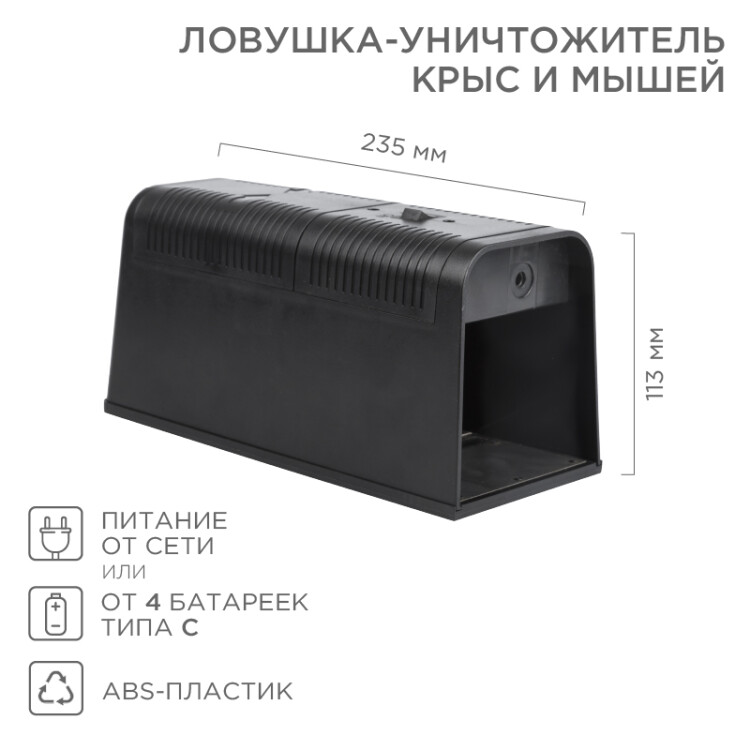 Ловушка-уничтожитель крыс и мышей 6Вт, 23,5х10,2х11,3см REXANT (кр. 1 шт)