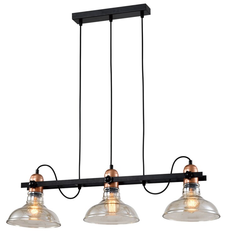 Дизайнерская подвесная люстра Leila (арт. 4093-203) от итальянского бренда Rivoli. Подвесные люстры Rivoli Leila под 3 лампы Е27 40 Вт представляют собой 3 стеклянных плафона в ретростилистике, объединенных металлическими рейками черного матового цвета. Прозрачные плафоны люстры имеют легкое теплое тонирование для смягчения света. Стильные патроны люстры с окрашиваем под медь крепятся к арматуре декоративными лофт-фиксаторами. Длину тросов легко отрегулировать, когда подвесные люстры Leila Rivoli монтируются на потолок.