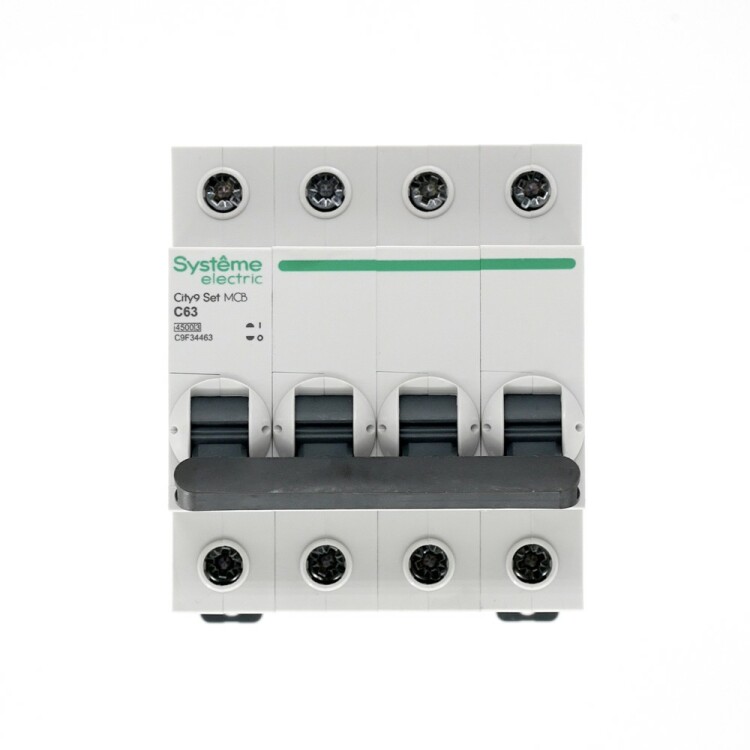 Автоматический выключатель серии City9 Set Systeme Electric, 4-полюсный, номинальный ток 63 А, характеристика С, Icn = 4.5 кА. Примен яется в электрических сетях напряжением 400 В. Предназначен для защиты от перегрузок и токов короткого замыкания. Оснащен механизмом «мгновенной коммутации». Ударопрочный корпус из специального пластика с 6 металлическими заклепками. Безопасные клеммы исключают попадание кабелей в заклеммное пространство (ранее Schneider Electric Easy9 EZ9F34463).