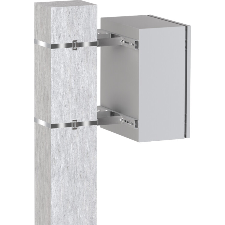 Комплект для монтажа к столбу представляет собой крепежно-монтажный комплект и универсальную конструкцию для крепления к столбу любых навесных щитов.