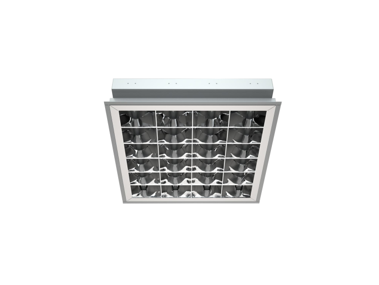 Встраиваемый светильник для офисных и учебных помещений с улучшенной параболической отражающей решеткой из алюминия Alanod, обеспечивающей оптимальное светораспределение и высокий КПД.