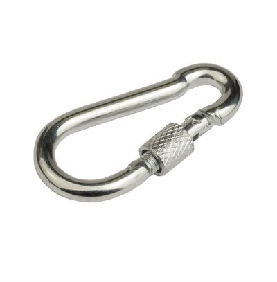 Карабин используется для соединения между собой тросов, веревок, цепей, а также для их крепления к опорным конструкциям. Разъемное соединение можно легко демонтировать при необходимости. Встроенный фиксатор делает соединение более надежным. Карабин может применяться только для крепления, для подъема грузов его использовать нельзя.