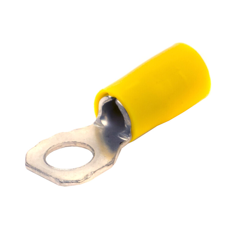Изолированный кабельный наконечник с отверстием под винт (НКИ) предназначен для оконцевания кабелей в цепях переменного и постоянного тока с рабочим напряжением до 600 В. Особенностями наконечника являются квадратная форма контактной лопатки, обеспечивающая надёжную фиксацию на клеммах с боковыми ограничителями, а также внутренняя поверхностью гильзы с зазубринами, увеличивающая плотность контакта при обжиме. Луженое покрытие обеспечивает защиту от коррозии. Наконечник соответствует классу горючести V0 по стандарту UL 94. Диапазон сечений — 2,5-6 мм², диаметр крепёжного элемента — М4. Цвет — желтый.
