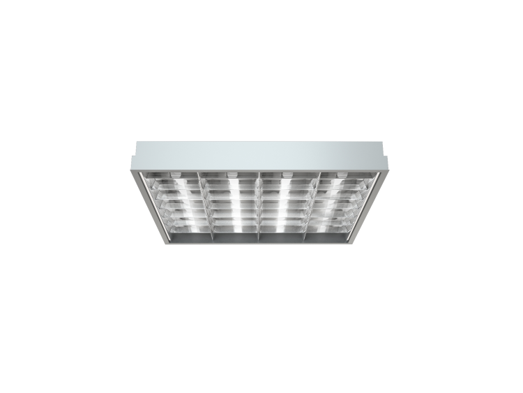 Встраиваемый светильник для учебных и офисных помещений. V-образная отражающая решетка из алюминия марки Alanod обеспечивает высокий КПД светильника.