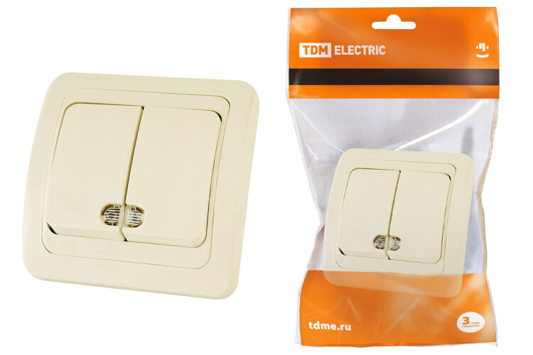 Выключатель 2-кл. с подсветкой 10А сл. кость "Валдай" TDM (кр.10шт)