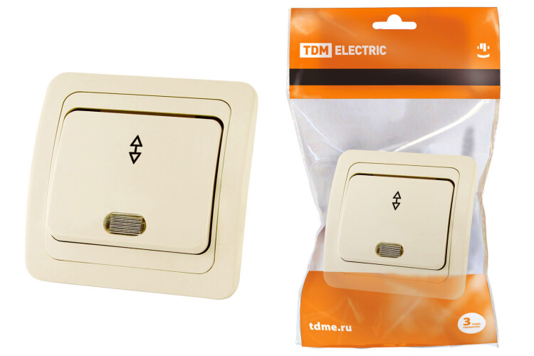 Переключатель на 2 направления с подсветкой 10А сл. кость "Валдай" TDM (кр.10шт)