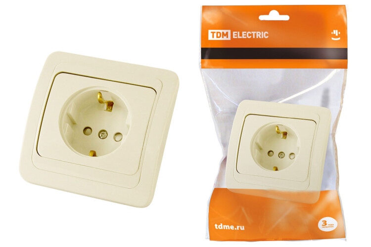 Розетка 2П+З 16А c защитными шторками сл. кость "Валдай" TDM (кр.10шт)