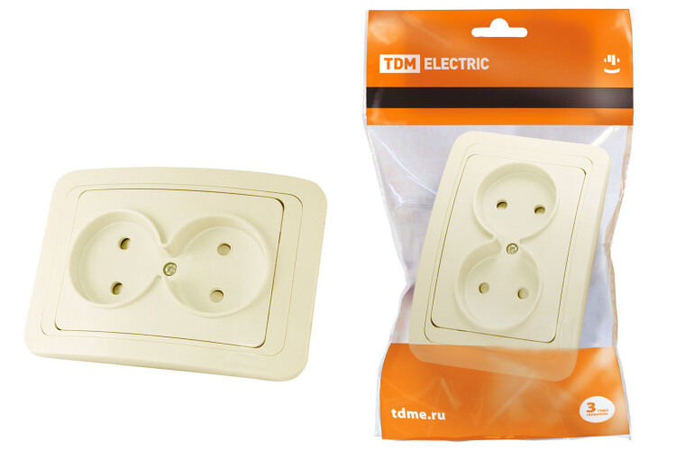 Розетка двойная 2П 10А c защитными шторками сл. кость "Валдай" TDM (кр.10шт)