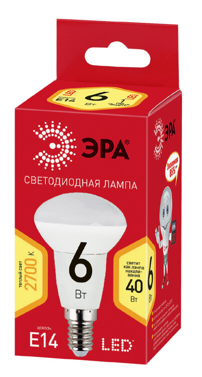 Лампочка светодиодная ЭРА RED LINE ECO LED R50-6W-827-E14 Е14 / Е14 6Вт рефлектор теплый белый свет (кр. 1шт)