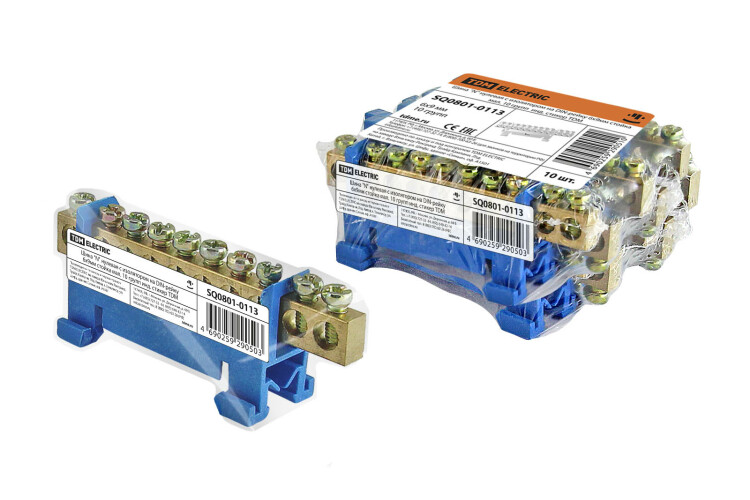 Шина "N" нулевая с изолятором на DIN-рейку 6x9мм стойка мал. 10 групп инд. стикер TDM (кр.10шт)